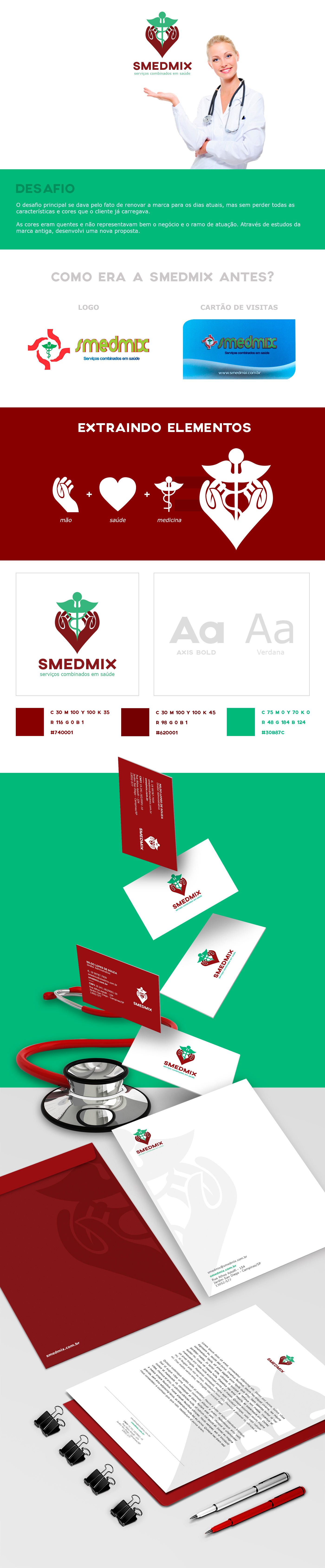 Rebranding da marca SMEDMIX. Cliente do ramo de serviços combinados para saúde